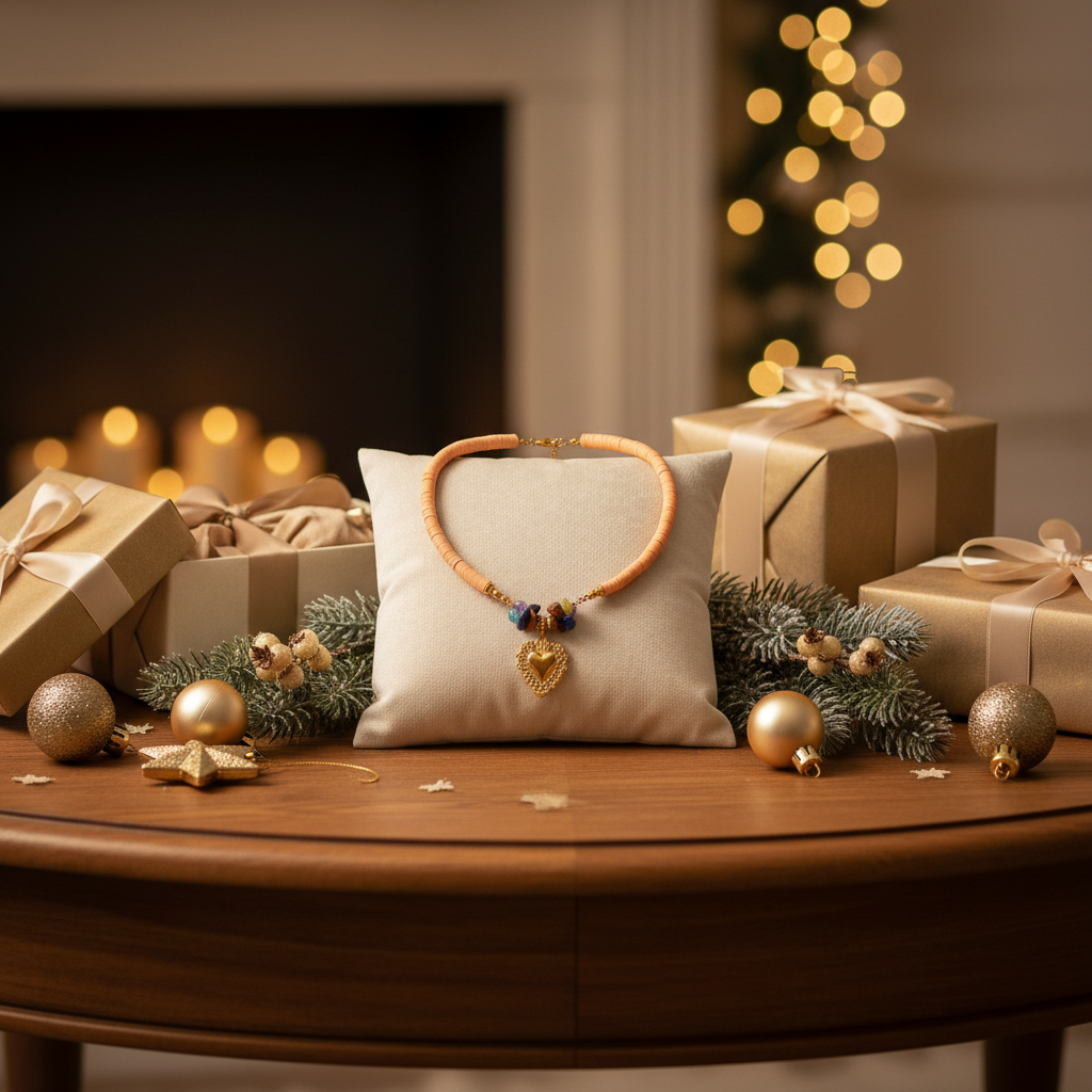 Radiating warmth and whimsy, the Buttercup Love Necklace combines soft beige clay beads with a cluster of multicolor natural stones and a gold sacred heart pendant. Each detail celebrates love, light, and playful sophistication — a vibrant piece that brightens any look.