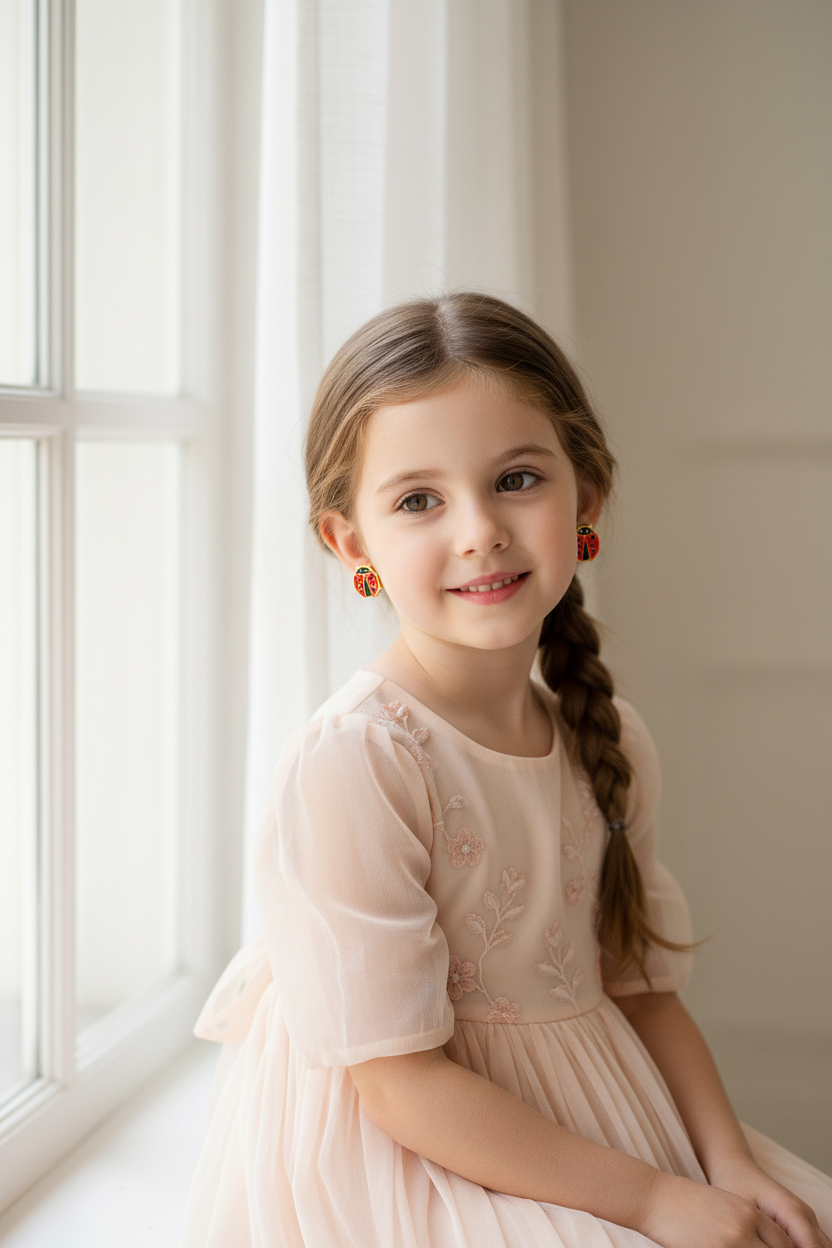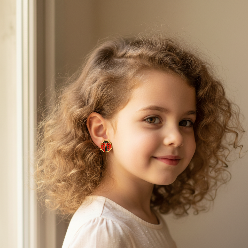 Bring a sprinkle of luck and color with our Lucky Ladybug Studs. Crafted in glossy red and black enamel with golden outlines, these charming little bugs add a joyful pop to any outfit. Lightweight, comfortable, and irresistibly cute — they’re a darling favorite for every little adventurer.