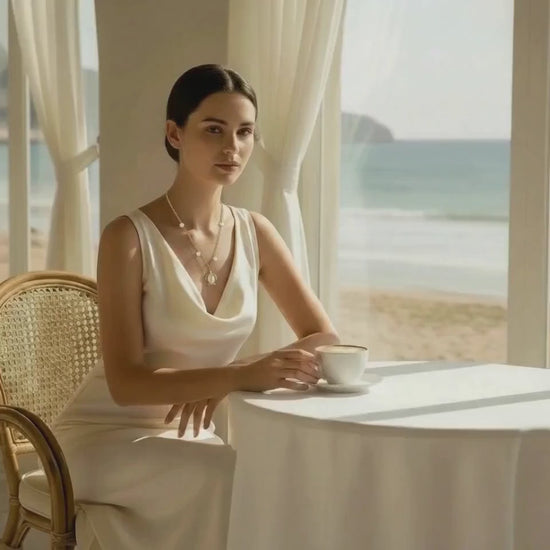 Inspired by the protective beauty of the sea, the Ocean Grace Necklace reflects the quiet strength and elegance found in ocean shells and coastal life. At its center rests a luminous mother-of-pearl turtle — a symbol of protection, endurance, and gentle resilience. Each freshwater pearl is hand-selected, adding organic movement and a soft, ocean-kissed glow.